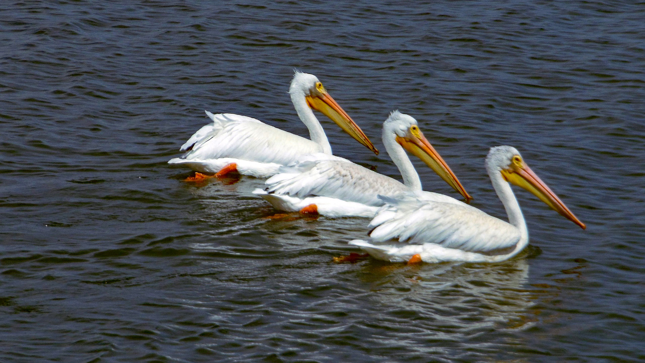 I was hiking on the Alviso hiking paths and I spotted five pelicans