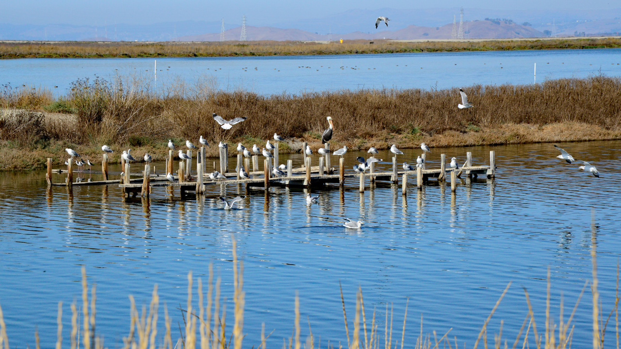the Bay Trail near Shorline Lake in Mountain View, California.