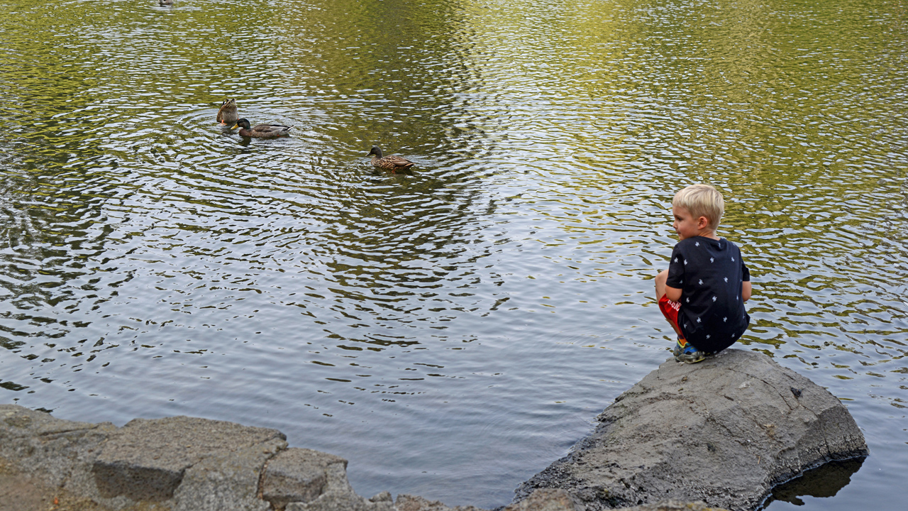 Rounding a bend, I spotted a small boy on a large rock jutting out