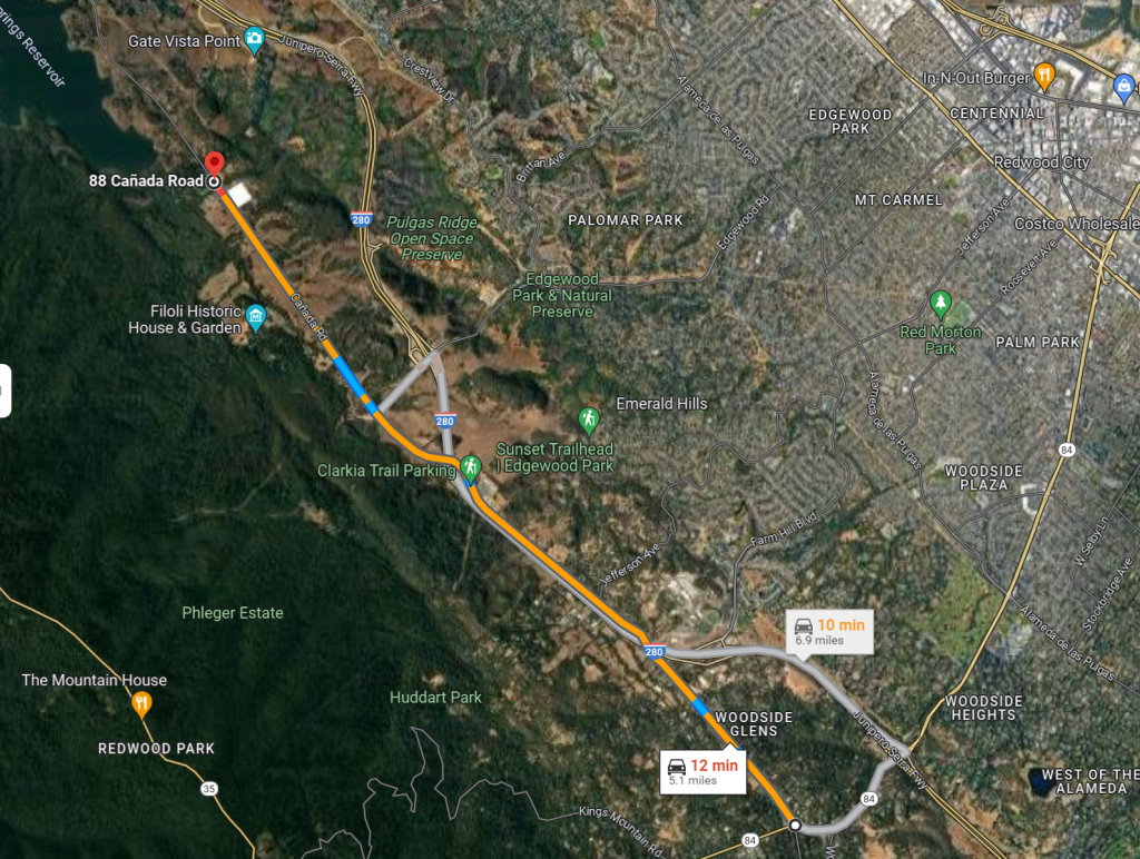 Pulgas Water Temple is quite easy to find Head North on 280, Take Exit -29, Edgewood Rd and TURN LEFT - West TURN RIGHT on Canada Rd and head North for just under 2 miles The gate to the Pulgas Parking Area is on the left. |